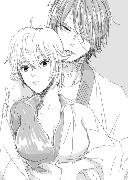 ↑犯罪だといわれた一枚。ラブラブぎゅ♡っていう思いで描いたのに後ろの高杉のせいです。